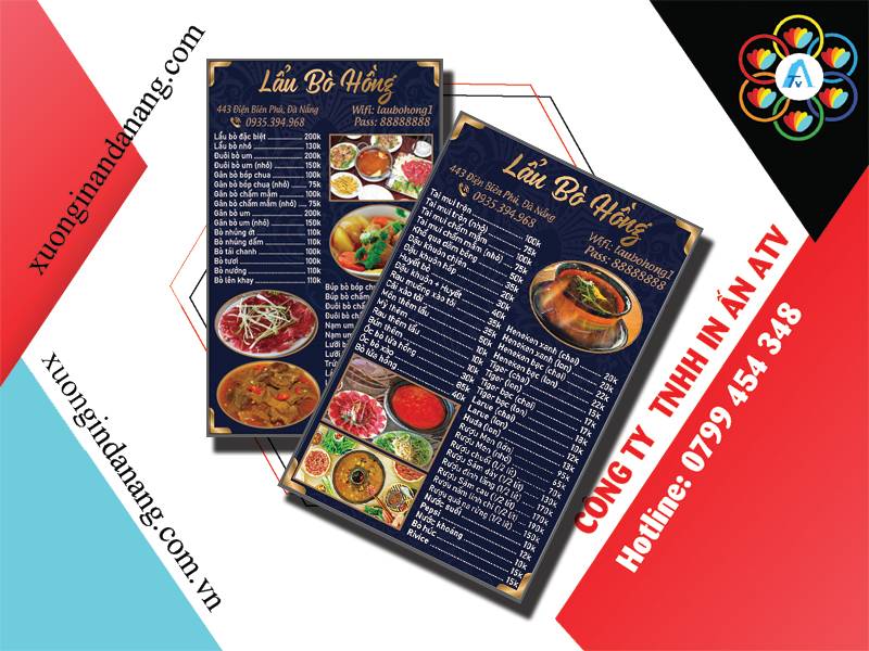 Làm menu rẻ mà đẹp, chất lượng chỉ có tại In Ấn ATV Đà Nẵng. Chuyên thiết kế và in ấn Menu, thiết kế nhanh, in nhanh, có nhanh. Chất Lượng Hiệu Quả. Thiết Kế Theo Yêu Cầu. Tư Vấn