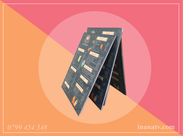 Khác với menu tiệm cafe, menu cho quán nước đơn giản nhỏ gọn và năng động hơn. Bạn có thể chọn những kiểu menu cầm tay, menu 1 tờ hay menu để tại quầy để giảm chi phí làm menu nước xuống thấp nhất. Trường hợp có quá nhiều món, hãy suy nghĩ đến những kiểu in menu cuốn giá rẻ tại In Ấn ATV(ALO để được tư vấn kỹ hơn).